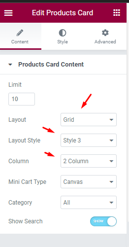 Restrofood offers 6 different kinds of product layouts to showcase your products. You can set it globally from the settings option or a specific Elementor widget. Follow the screenshots to set the settings.